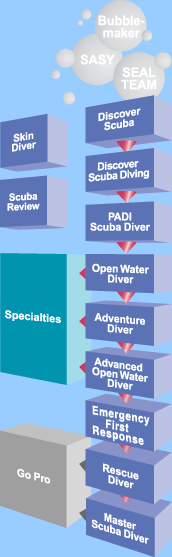 sistema di addestramento modulare PADI include tutti i tipi di corsi: